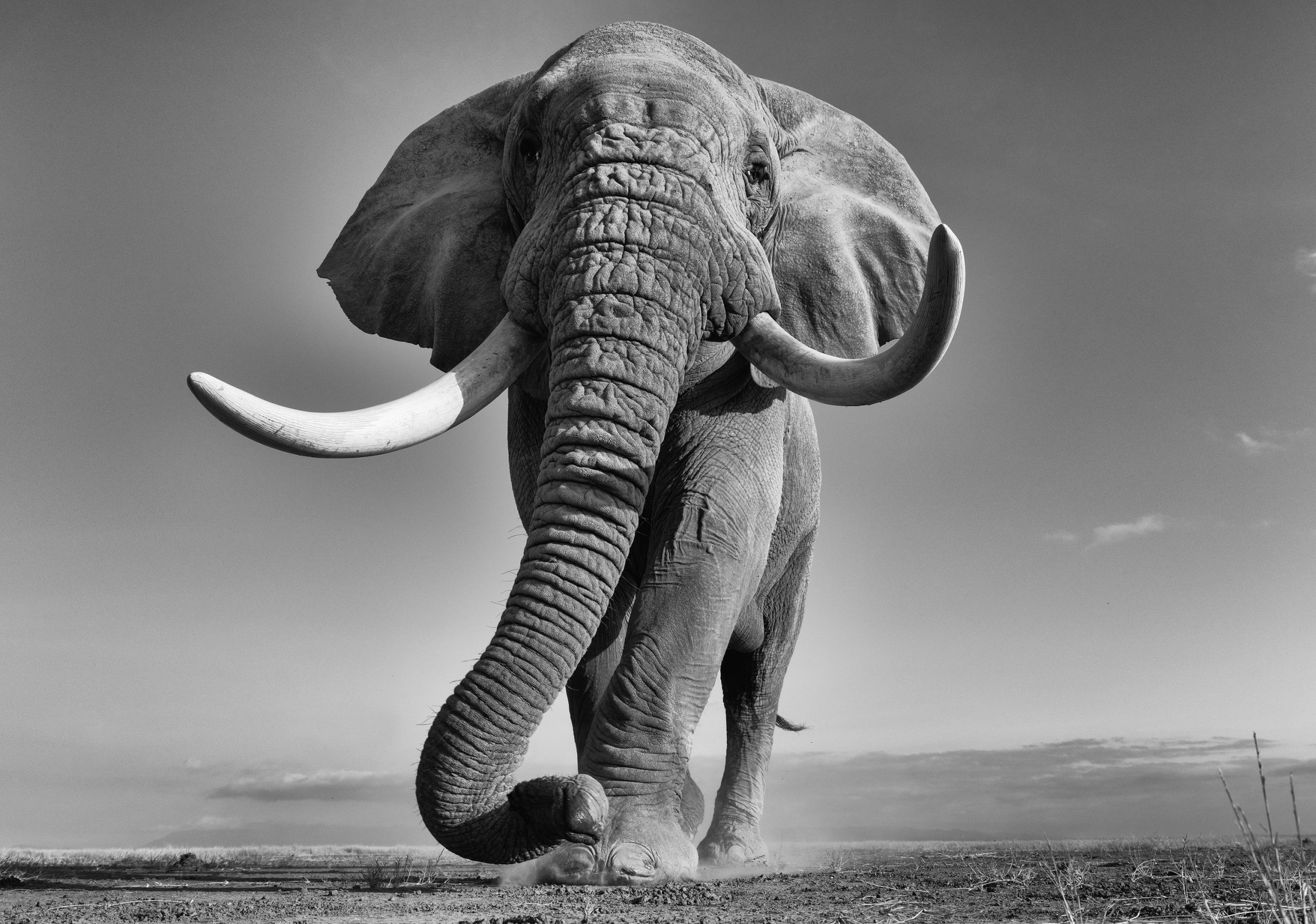 This huge bull had such magnificent ivory that splayed outwards rather than downwards evoking the sense that you are directly under him with his balanced pose further accentuating his towering form.