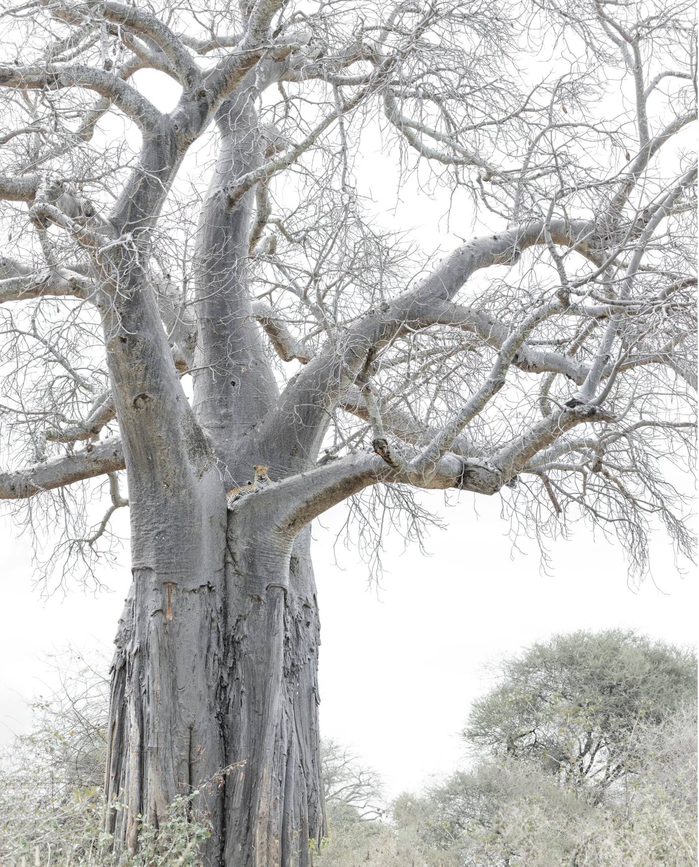 Fumbling and shaking, I grabbed first one lens, then the next, knowing that at any moment this marriage of icons could be lost. I need not have worried, as for the next four hours, two of Africa’s defining symbols of cryptic cat and venerable tree united as one.
